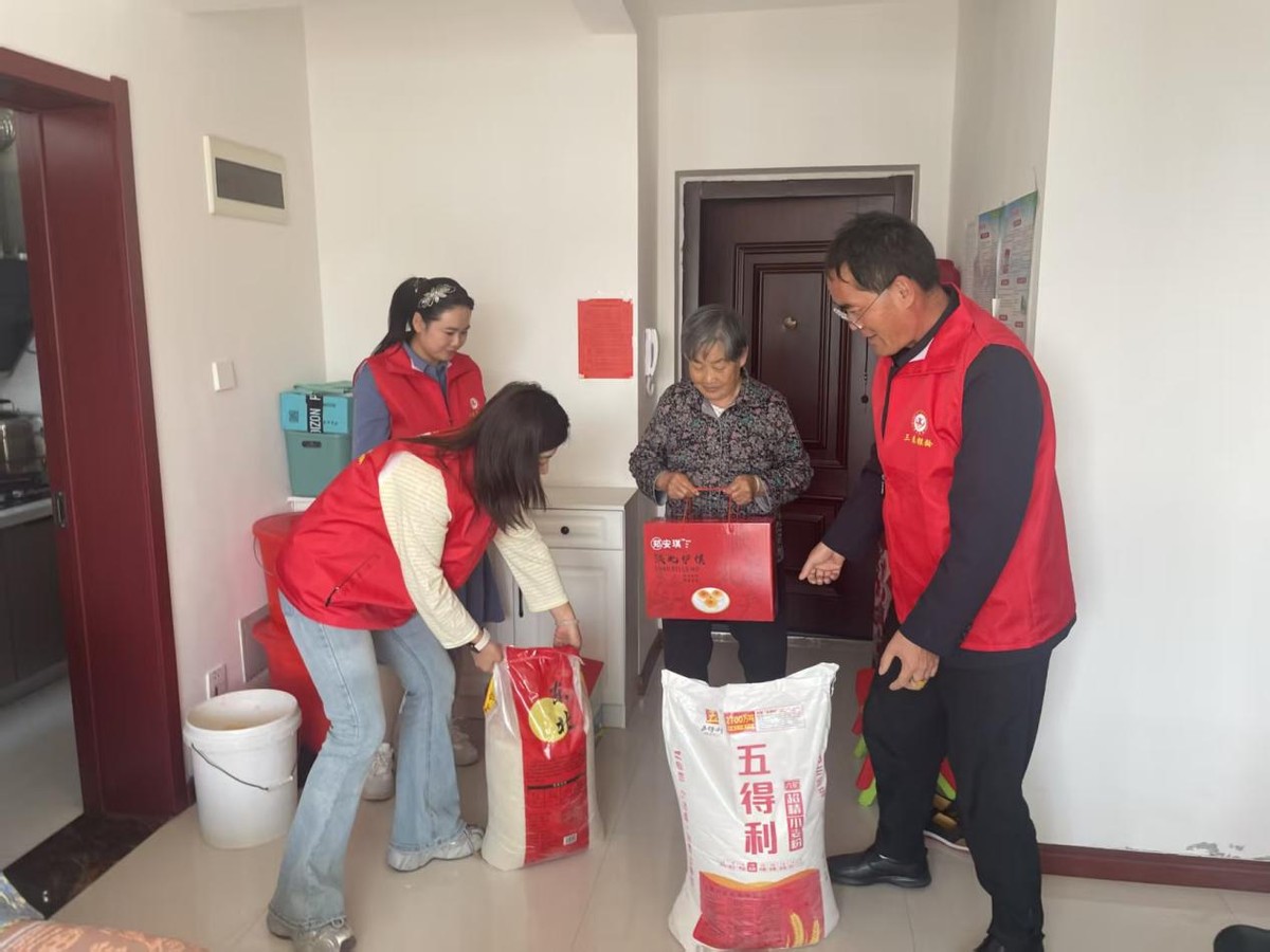 由10名银龄志愿者与7名社区工作人员组成的4支慰问小队,累计走访慰问30户老年家庭。志愿者和社区工作人员携带月饼和粮油米面,深入社区各楼栋,逐户上门探访并与老人亲切交谈,详细了解他们的饮食起居与健康状况,协助整理家居环境、并细致检查家中水电安全,排查隐患。