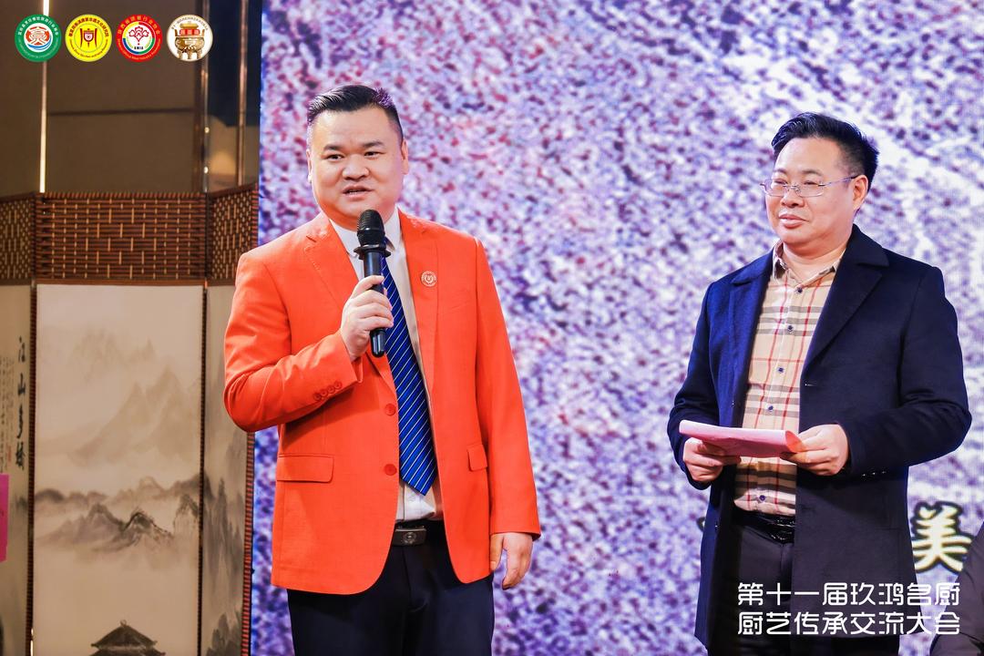 真挚的寄语回荡在会场,主持人有感而发:“日后见刀如见师父,见刀如见祖师。”随后,他邀请张世兴、马鹏海两位传承人发表感言。二人言语恳切,感恩恩师的信任与栽培,承诺必将不负重托,坚守厨道本心,传承刘门技艺,让陕菜文化焕发新的生机。主持人动情点评:“手中握的是双刀,肩上担的是传承。师父传的是有形的刀,更是无形的道,是刘氏门的魂与根!”