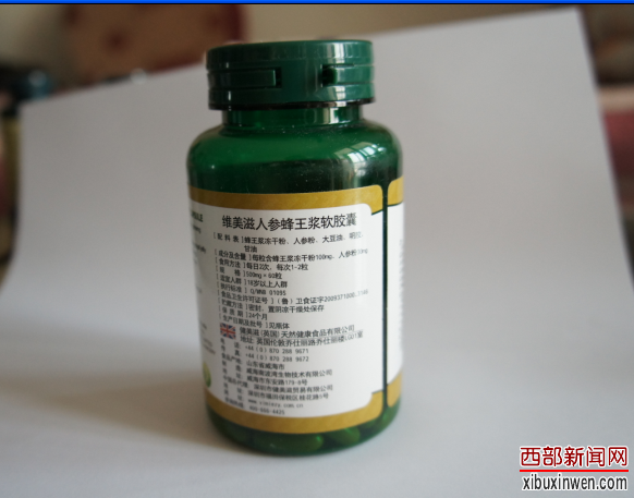 在业内人士的指点下,记者首先在京东商城上购买了一瓶生产批号为20120228的维美滋人参蜂王浆软胶囊。该产品的包装上明确标示配料含有人参粉,英国健美滋天然健康食品有限公司监制、威海南波湾生物技术有限公司生产的维美滋人参蜂王浆软胶囊。